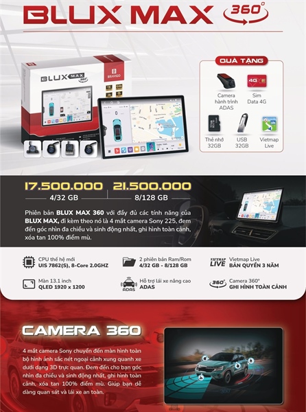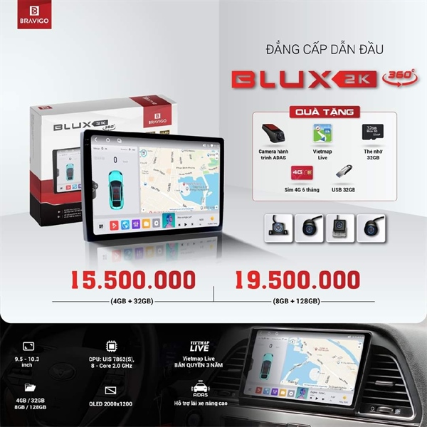 BLUX 2K - RAM 8G - ROM 128G / Màn Hình DVD androi kèm camera 360 BRAVIGO - BỘ