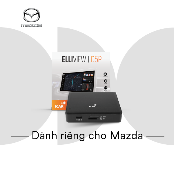 Cấu hình Android Box ICAR Elliview D5P-MZDCPUQualcomm QCM665RAM/ROM8GB+128GBCONNECTWifi, Bluetooth, Carplay, Thẻ nhớBuilt-in:Hệ điều hành Android 12, Cắm trực tiếp vào màn hình zin của xe.Tích hợp sẵn:Điều khiển giọng nói ICARV, Giao diện mới Elligo Smart.Elliview D5P-MZD: Tiên phong Giao diện Thông Minh - Khẳng định vị thếAndroid Box Elliview D5P-MZD với cấu hình khủng và dung lượng bộ nhớ tới 8GB+128BG mang đến những trải nghiệm vượt bậc về thiết kế giao diện, càng khẳng định vị thế luôn tiên phong trong việc mang đến những tiện nghi hoàn hảo nhất cho người cầm lái.