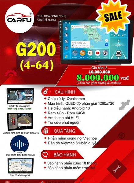 Carfu G200 ( 4*64G ) / Màn hình DVD hãng Carfu - BỘ