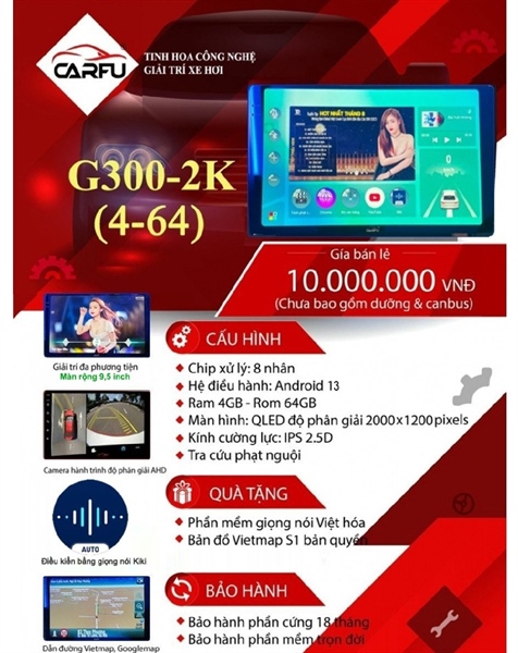 Carfu G300 - 2k / Màn hình DVD androi hãng Carfu - BỘ