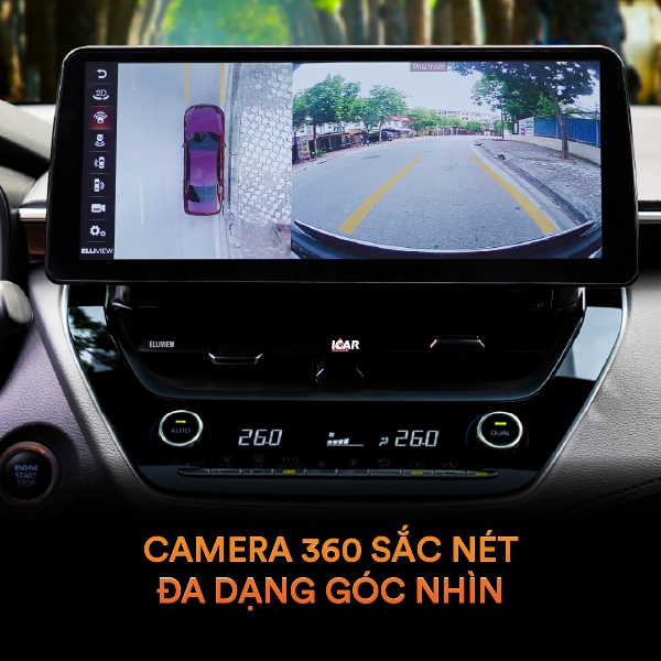 Camera 360 có góc cam rộng toàn cảnh xóa tan mọi điểm mù, mở được từng góc cam bằng điều khiển giọng nói ICAR-V. Đến mỗi cung đường đông, xe đi chậm lại camera sẽ tự động hiển thị trên màn hình. Và ngược lại tự động tắt cam khi xe đi với tốc độ nhanh. Cam cũng tự động được bật khi bạn xi nhan rất tiện nghi cho người lái xe.