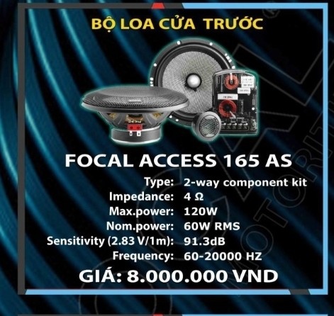 Lý do nên trang bị loa cánh 2-way Focal 165 AS cho xế yêu của bạn?Loa Focal 165 AS được xem là cao cấp nhất trong phân khúc. Thiết kế nhỏ gọn, độc đáo phù hợp với không gian ô tô. Loa Focal 165 AS là thứ không thể thiếu cho các bác yêu âm nhạc muốn thưởng thức trọn vẹn các dải âm từ trầm, trung đến cao. Âm bass hay và chắc, chất lượng hoàn thiện tốt nên sản phẩm hoạt động rất ổn định, bền bỉ.
