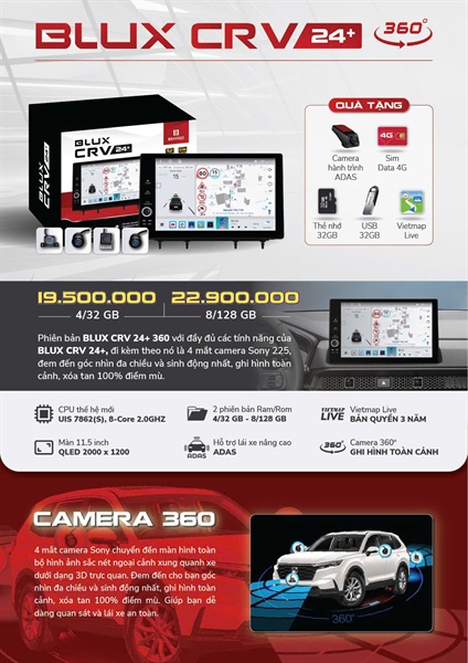 Màn hình BRAVIGO BLUX cho xe CRV 2024 liền camera 360 - BỘ