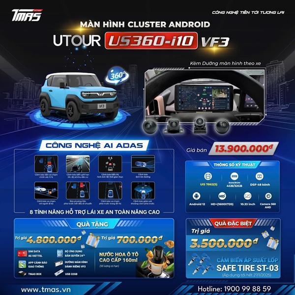 Sự kết hợp giữa cấu hình mạnh mẽ và công nghệ thông minh AI ADAS không chỉ mang lại hiệu suất vượt trội mà còn tăng cường các tính năng an toàn, hỗ trợ tài xế tối đa trên mọi hành trình. Cluster UTOUR US – i10 VF3 chính là lựa chọn hoàn hảo để nâng cấp chiếc xe của bạn lên một tầm cao mới.