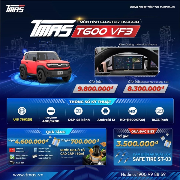 Dòng xe VinFast VF3 không được trang bị màn hình ODO (Cluster), điều này làm giảm khả năng quan sát trực tiếp của tài xế. Màn hình Cluster Android TMAS T600 VF3 ra đời nhằm giải quyết vấn đề này, mang lại sự hiện đại, an toàn, và tiện ích tối ưu cho người lái.