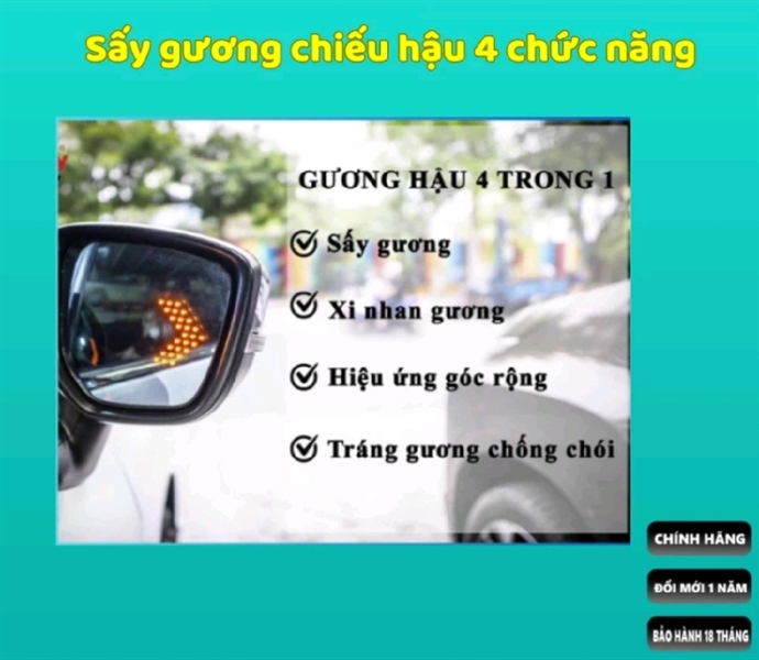 Mặt gương sấy 4in1 lắp chung cho hầu hết các dòng xe 4in1 bao gồm: - 1 là sấy nóng chống bám nước - 2 là mặt gương chống chói - 3 là xi nhan báo rẽ mặt gương - 4 là gương cầu lồi giúp tăng 30% góc quan sát Lắp đặt zin theo xe, dùng chung công tắc sấy kính sau xe Vị trí lắp đặt: 2 mặt gương xe Quy trình lắp đặt được thực hiện bởi đội ngũ nhân viên kỹ thuật chuyên nghiệp, có tay nghề cao, được đào tạo bài bản, cam kết mang cho khách hàng những trải nghiệm dịch vụ đẳng cấp nhất. Hỗ trợ lắp đặt sản phẩm