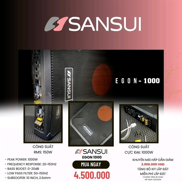 Thông số kỹ thuật loa SUB oto SANSUI EGON 1000