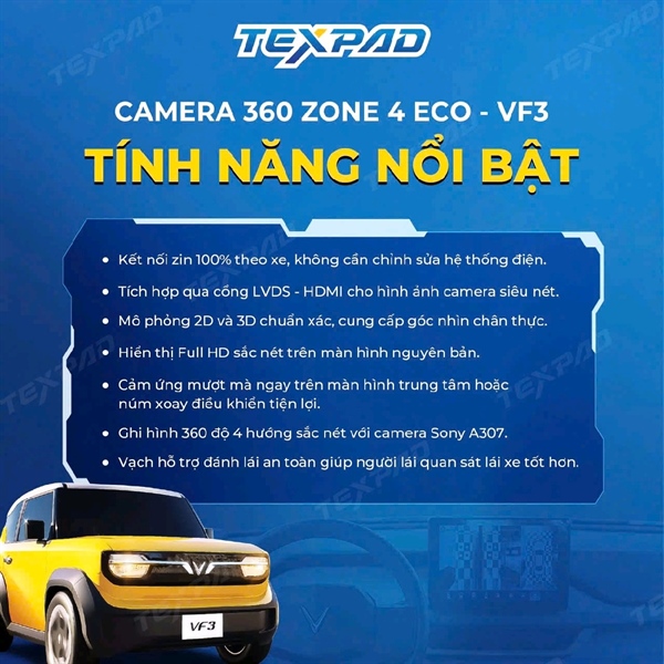 Texpad ZONE 4 eco VF3 / Hệ thống camera 360 cho xe VF3 hãng texpad - BỘ