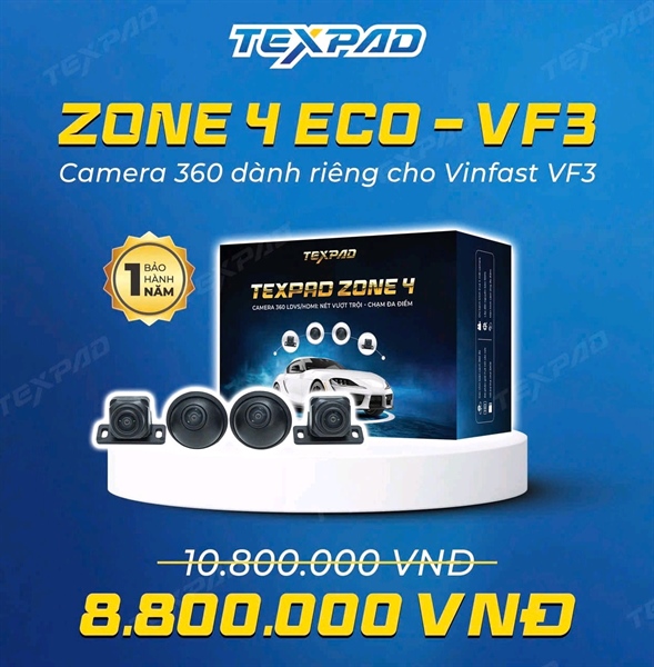 Camera 360 Texpad Zone 4 - Zin 100% Cho VinFast VF3Giá hoàn thiện chỉ 8.8 triệuCamera 360 Texpad Zone 4 là giải pháp mang lại tầm nhìn toàn diện và an toàn tối đa cho VinFast VF3. Những tính năng nổi bật bao gồm:Cắm Giắc Qua HDMI: Kết nối trực tiếp, giữ nguyên tính zin của xe.Ống Kính Sony A307 Siêu Sắc Nét: Cho hình ảnh rõ ràng, chi tiết trong mọi điều kiện.Cảm Ứng Màn Hình & Núm Xoay Land Rover: Dễ dàng thao tác và đổi góc nhìn chỉ bằng chạm hoặc xoay.Ghi Hình 4 Hướng: Quan sát toàn cảnh, giảm thiểu tối đa điểm mù và hỗ trợ đỗ xe an toàn.- - - - - - - - - - - - - - - - - - - - - - - @LỘC PHÁT AUTO * Cơ sở 1 : Số 188 Phố vũ đức thận , Việt Hưng. long Biên , Hà Nội* Cơ sở 2 : Số 05 Đồng Lễ , Đông Hải , Tp Thanh Hóa .hotline : 0906.57.75.57